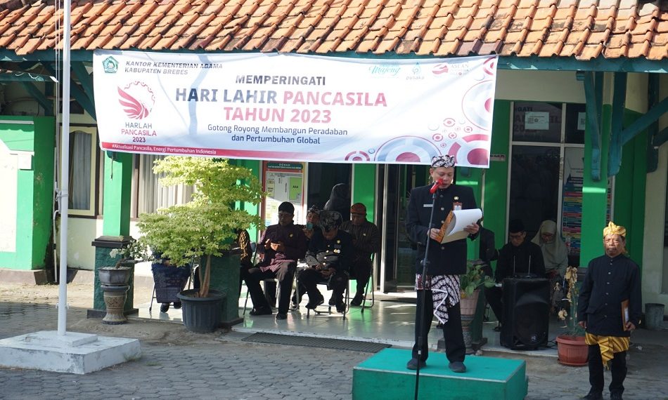 Bertindak selaku inspektur upacara, Plt. Kepala Kantor Kemenag Brebes, H. Mad Soleh. Yang membacakan sambutan resmi dari Presiden Republik Indonesia. “Menilik sejarah, Pancasila lahir pada 1 Juni 1945 dalam sidang BPUPKI saat Soekarno menyampaikan pidatonya pertama kali mengemukakan konsep awal Pancasila yang menjadi dasar negara Indonesia. Beberapa dekade kemudian, berdasarkan Keppres Nomor 24 Tahun 2016 tentang Hari Lahir Pancasila, pemerintah menetapkan tanggal 1 Juni 1945 sebagai Hari Lahir Pancasila dan juga hari libur nasional”. jelasnya
